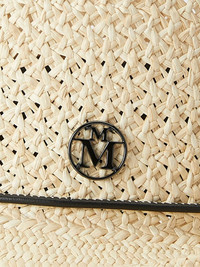 Karen straw trilby hat Highlights - Light beige/black - Straw/calf leather - Cabochon crown - Wide brim - Applique logo Imported Composition Calf Leather 100%, Polycarbonite 100%, Straw 100%