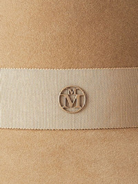 Kate wool felt fedora camel brown wool felt grosgrain ribbon trim gold-tone logo plaque concave crown dropped wide brim waterproof Made in France Composition Wool Felt 100%