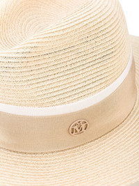 Henrietta fedora hat Highlights - Beige - Straw - Centre-dent crown - Grosgrain ribbon trim - Wide brim - Logo plaque Made in Italy Composition Straw 100% SIZE & FIT Measurement BRIM 2.95 in(7.5 cm) CIRCUMFERENCE 20.86 in(53 cm)