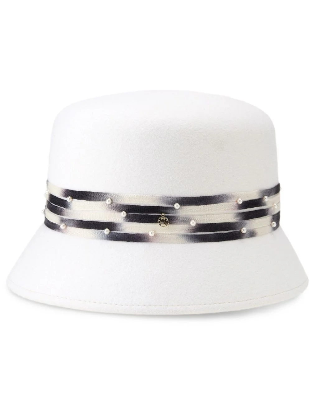 mini New Kendal wool-felt bucket hat Highlights - White/multicolour - Wool felt - Round crown - Dropped narrow brim - Strap detailing - Logo charm - Faux-pearl embellishment - Pull-on style Made in Italy Composition Wool Felt 100%, Cotton 100% SIZE & FIT Measurement CIRCUMFERENCE 22.04 in(56 cm)