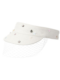 New Abby veil visor Highlights - White/multicolour - Cotton blend - Sequin embellishment - Crystal embellishment - Veil detail - Logo charm - Curved peak - Open crown Made in Italy Composition Linen/Flax 50%, Cotton 45%, Acrylic 5%