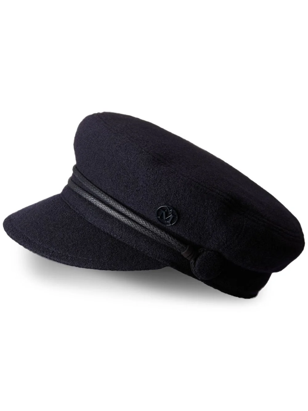 New Abby wool sailor cap Maison Michel is rooted in couture millinery and uses traditional methods to handcraft designs like this New Abby cap. Modelled after heritage sailor styles, it’s made from navy wool with a detachable braided leather band. Highlights - Navy blue - Wool - Leather trim - Detachable braided band - Logo plaque - Decorative button detailing - Flat brim Imported Composition Calf Leather 100%, Wool 100% SIZE & FIT Measurement BRIM 2.16 in(5.5 cm) CIRCUMFERENCE 22.83 in(58 cm)