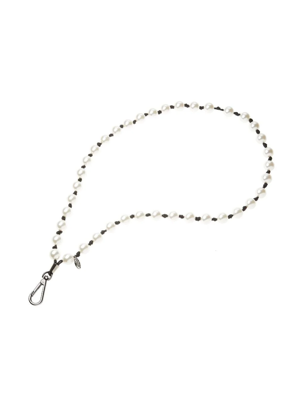 pearl-design bag charm ivory white/black faux-pearl detailing knot detailing gold-tone hardware hook fastening Made in Italy Composition Plastic 70%, Polyester 20%, Metal (Other) 10%