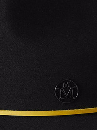 Rico felt fedora hat black rabbit fur felt leather band trim logo plaque centre-dent crown narrow brim slip-on style Made in Italy Composition Wool 100% SIZE & FIT Measurement CIRCUMFERENCE 22.04 in(56 cm)