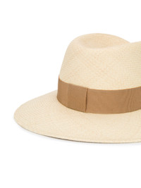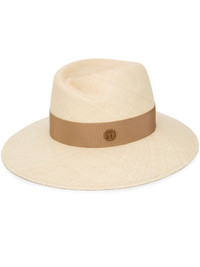 Beige straw woven band hat from Maison Michel featuring a wide brim, a woven design, a grosgrain band, a logo plaque and a moulded crown. Size & Fit Model Measurements: Bust: 0cm Height: 0cm Hips: 0cm Waist: 0cm Fabric and Care Designer Style ID: 1001097001 Designer Colour: BEIGe Composition: Straw 100% Made in Germany