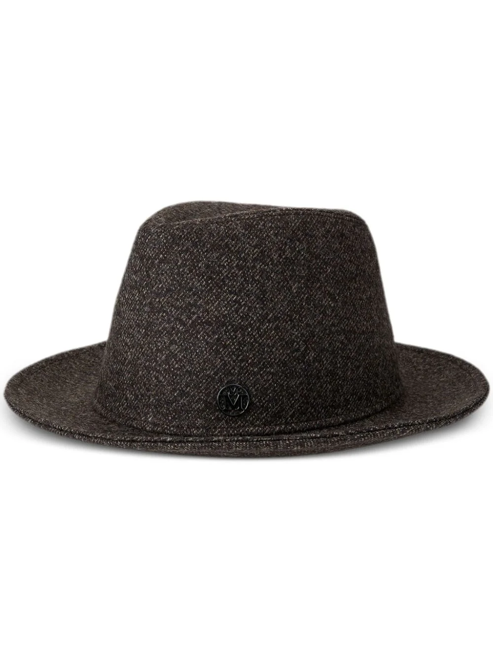 Ygor wool-blend fedora dark brown wool blend denim flat brim centre-dent crown logo plaque pull-on style Made in Italy Composition Wool 78%, Polyester 20%, Fabric 2%