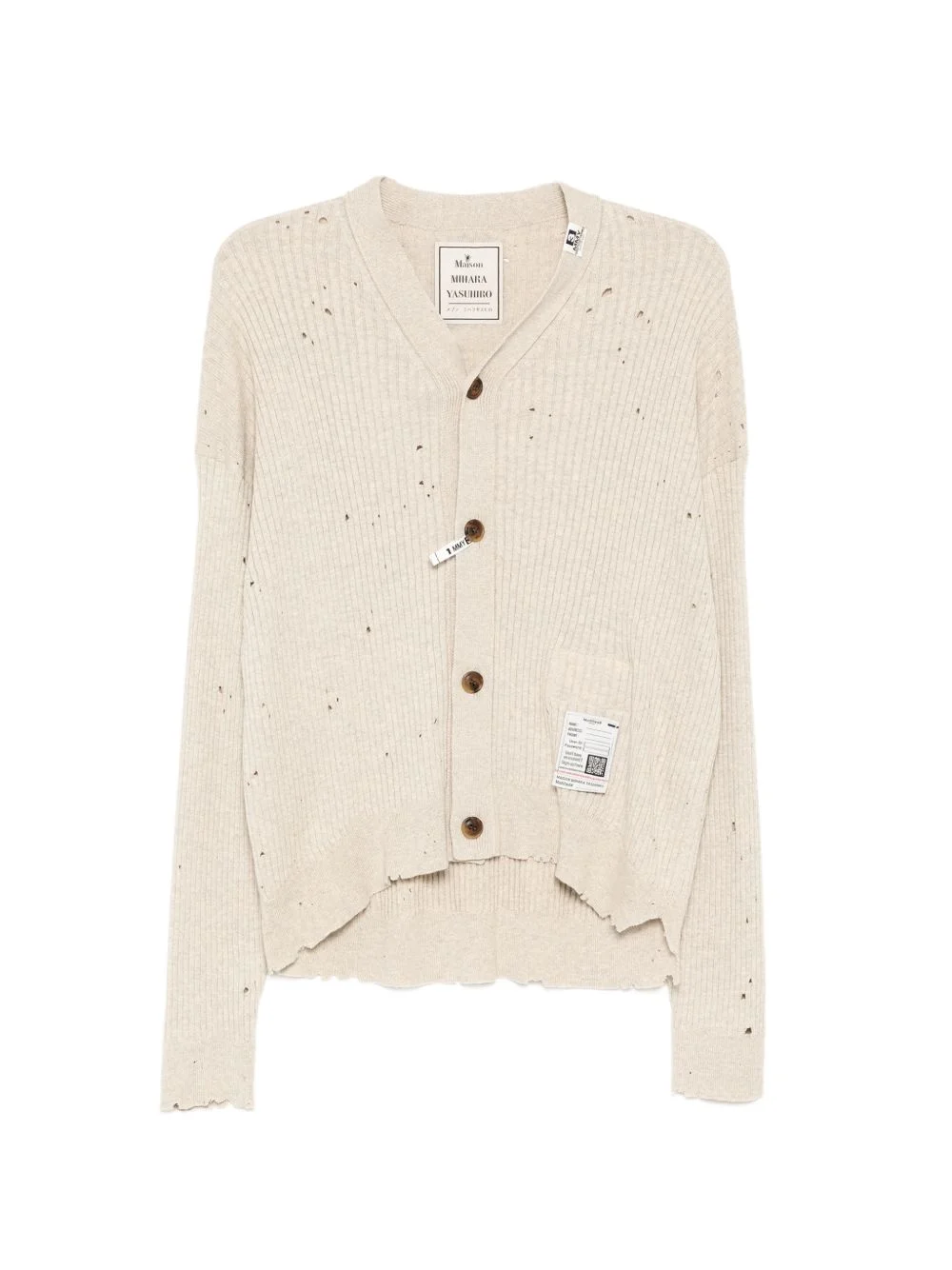 asymmetric distressed cardigan Highlights - Taupe - Front button fastening - V-neck - Ribbed cuffs - Raw hem Imported Composition Cotton 100% Washing instructions Dry Clean Only