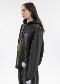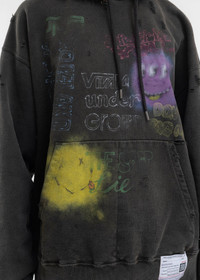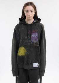 Bleached hoodie in black, from Mihara Yasuhiro. Features an oversized paneled construction with dropped sleeves, multicoloured graphic prints, and logo patch detailing at the left hem and hood. Finished with rib-knit cuffs and hem, and tonal stitching. Oversized Fit 100% Cotton Imported Model is wearing a size 46 Model is 5'7" (172 cm), 98 pounds (44kg), usually wears S in tops. A size 25 in denim and S in trousers. Size 8 in shoes.