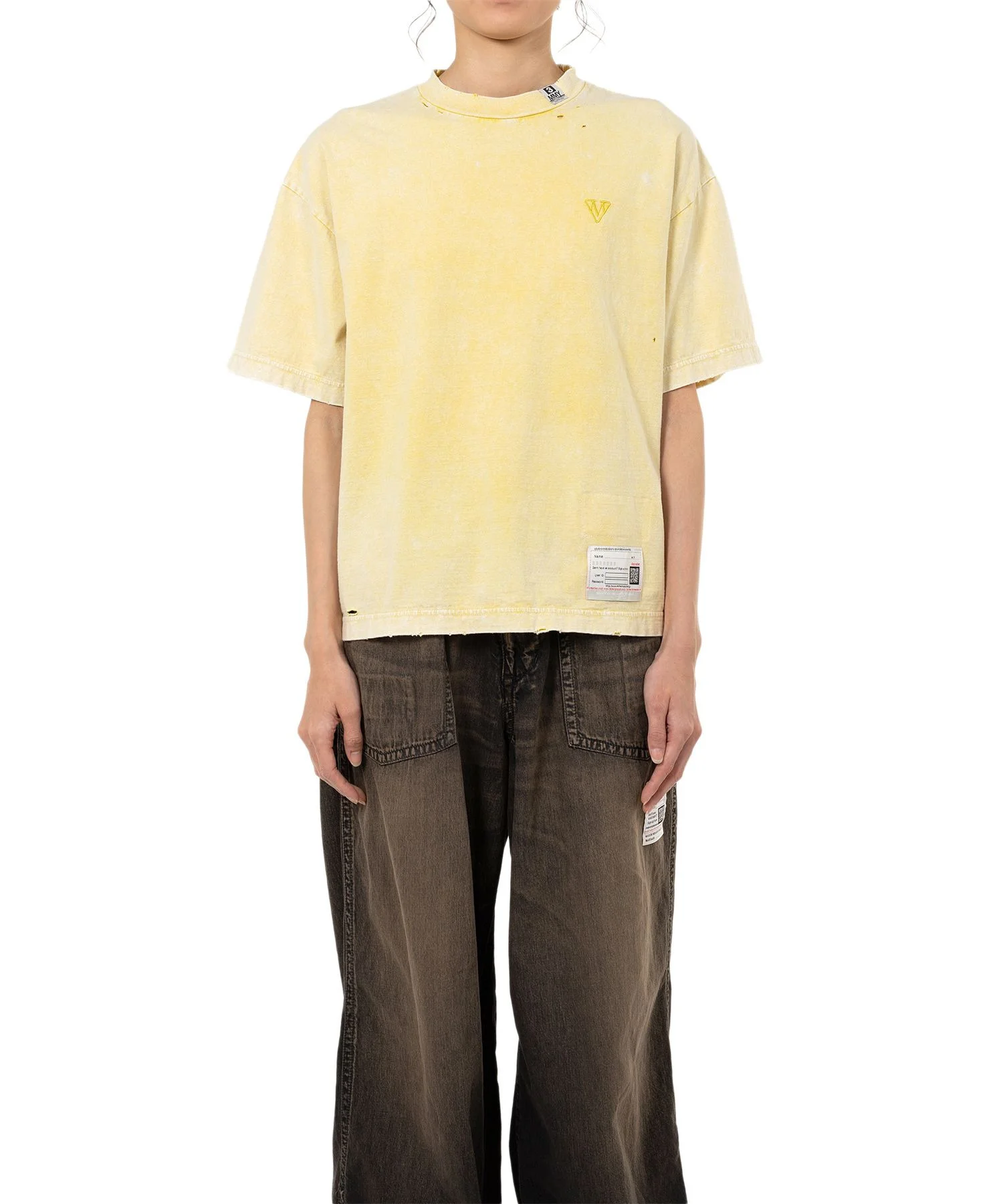 【2025 Autumn/Winter Collection】 Bleached T-shirt T-shirt with bleached finish Bleached throughout for a worn-in look and feel. Crew neck. Original logo embroidered on the left chest. *Tears seen throughout are part of the design. Wearing model : 172cm Wearing size : 38 ※Product images may appear different from the actual item due to lighting conditions during photography or variations in monitor settings. ※Some photos feature sample items; actual products may differ slightly in finish or sizing. ※Color, texture, and specifications may vary slightly due to differences in production timing or individual characteristics of each piece. We appreciate your understanding. - Item No: B15TS602 - Brand: Maison MIHARA YASUHIRO - Category: WOMENS » TOPS » TSHIRTS - Season: 2025 A/W - Material: COTTON 100% - Made In: JAPAN