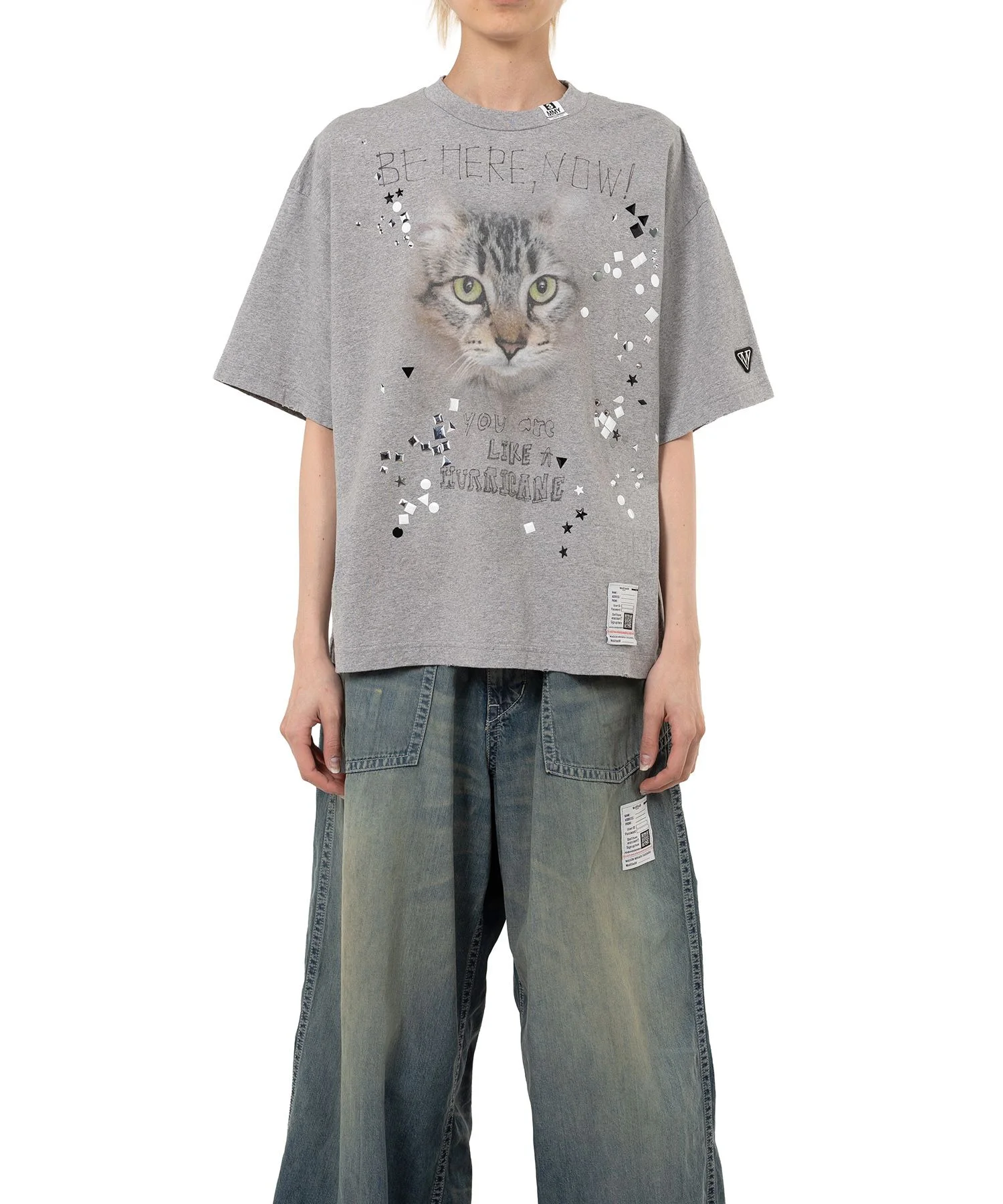 【2025 Autumn/Winter Collection】 Cat Printed Embellished Distressed T-Shirt T-shirt with cat printed on the front. Damaged, rhinestone decorated design. Crew neck. Original embroidered patch on the left cuff. *The cat species printed on the product differs depending on the color of the product. Wearing model : 170cm Wearing size : 38 ※Product images may appear different from the actual item due to lighting conditions during photography or variations in monitor settings. ※Some photos feature sample items; actual products may differ slightly in finish or sizing. ※Color, texture, and specifications may vary slightly due to differences in production timing or individual characteristics of each piece. We appreciate your understanding. - Item No: K15TS762 - Brand: Maison MIHARA YASUHIRO - Category: WOMENS » TOPS » TSHIRTS - Season: 2025 A/W - Material: COTTON 100% - Made In: JAPAN