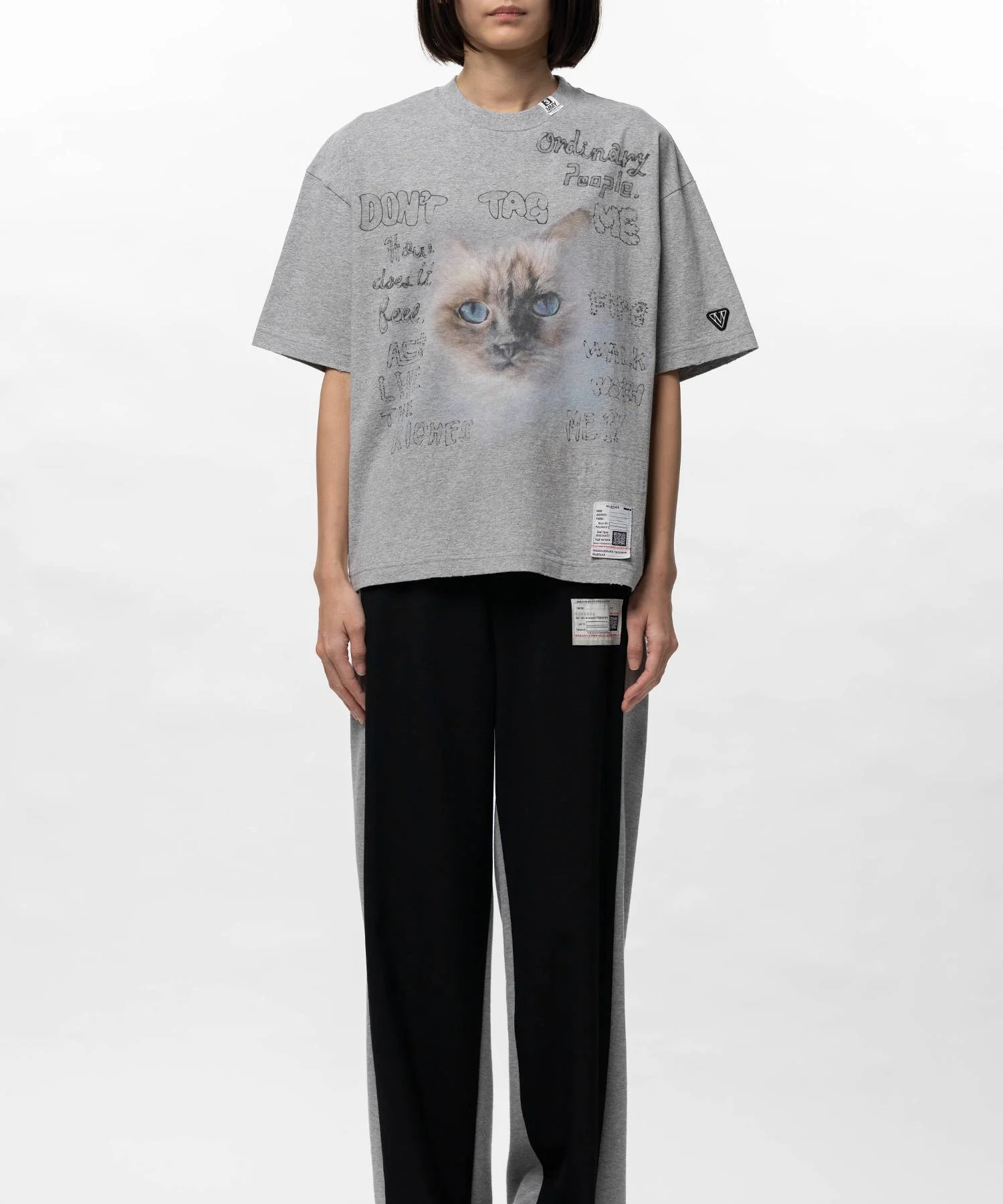 【2026 Spring /Summer Collection】 Cat Printed T-shirt T-shirt with a cat print on the front. Crew neck. Original embroidered patch on the left sleeve cuff. *The cat breed printed varies by product color. Wearing model : 175cm Wearing size : 38 ※Product images may appear different from the actual item due to lighting conditions during photography or variations in monitor settings. ※Some photos feature sample items; actual products may differ slightly in finish or sizing. ※Color, texture, and specifications may vary slightly due to differences in production timing or individual characteristics of each piece. We appreciate your understanding. ※Intentional distressing such as holes, fading, and staining is part of the design and reflects the character of the item. Please enjoy these features as part of its unique aesthetic. - Item No: K16TS772 - Brand: Maison MIHARA YASUHIRO - Category: WOMENS » TOPS » TSHIRTS - Season: 2026 S/S - Material: Cotton 100% - Made In: JAPAN