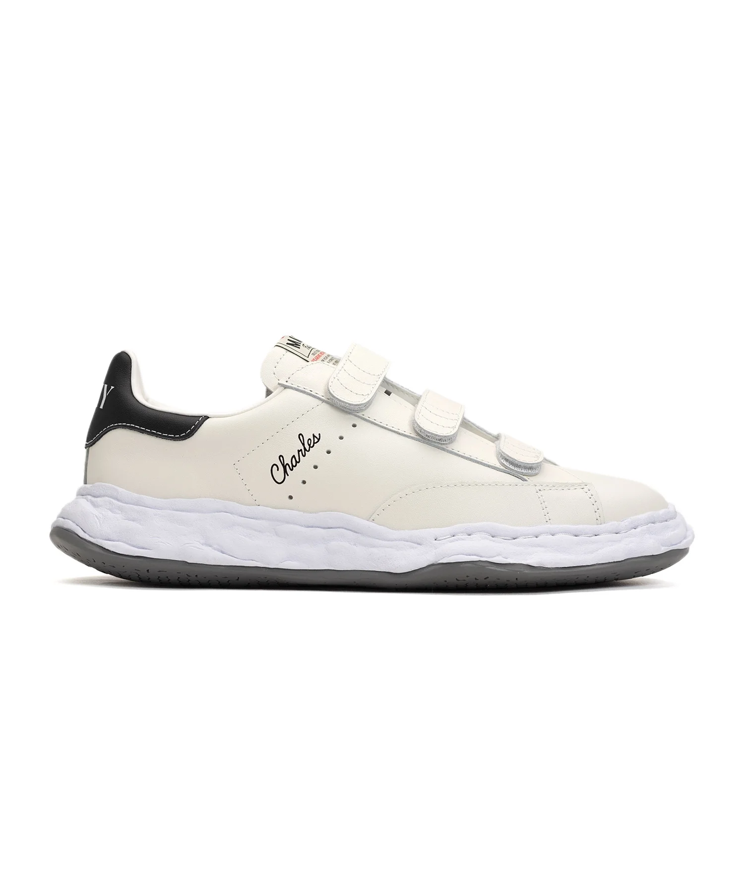 【Price Revision Notice】 The price of this product has been revised for all items sold on or after Saturday, December 13, 2025, at 00:00 (JST). We kindly ask for your understanding. "CHARLES" Original Sole Leather Low-top Verclo Sneaker 2024SS new model "CHARLES" . Verclo design with Leather upper. Model name printed on the outer side of the upper. "MMY"designed on the counter. * Please note that the notations for 'JP' and 'US' are shown for reference purposes only. ※Product images may appear different from the actual item due to lighting conditions during photography or variations in monitor settings. ※Some photos feature sample items; actual products may differ slightly in finish or sizing. ※Color, texture, and specifications may vary slightly due to differences in production timing or individual characteristics of each piece. We appreciate your understanding. - Item No: A12FW702 - Brand: Maison MIHARA YASUHIRO - Category: EVERYONE » SHOES » SNEAKERS - Material: UPPER : COW LEATHER SOLE : RUBBER - Made In: CHINA