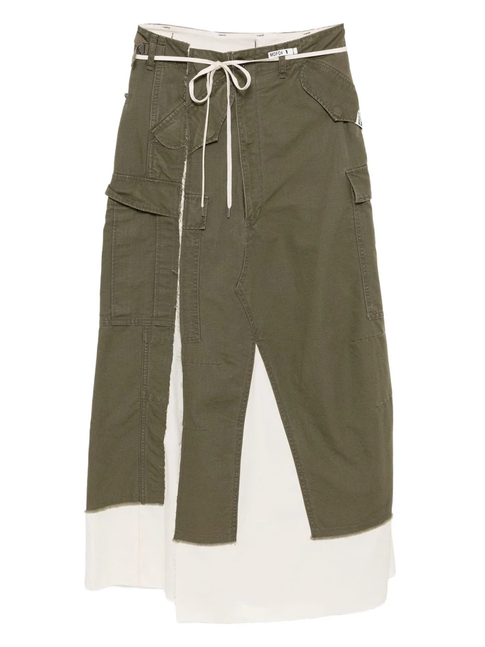 distressed cotton cargo skirt Highlights - Khaki green - Front button and zip fastening - Detachable waist belt - Two side cargo pockets - Two rear flap pockets Imported Composition Cotton 100% SIZE & FIT Model measurements Height 5 ft 10 in(1.78 m) Bust/Chest 30.31 in(77 cm) Hips 37 in(94 cm) Waist 24.8 in(63 cm) FittingInformation This midi-length skirt is intended to be worn just below the waist Made from a midweight non-stretch fabric Washing instructions Read Manufacturer Guidelines