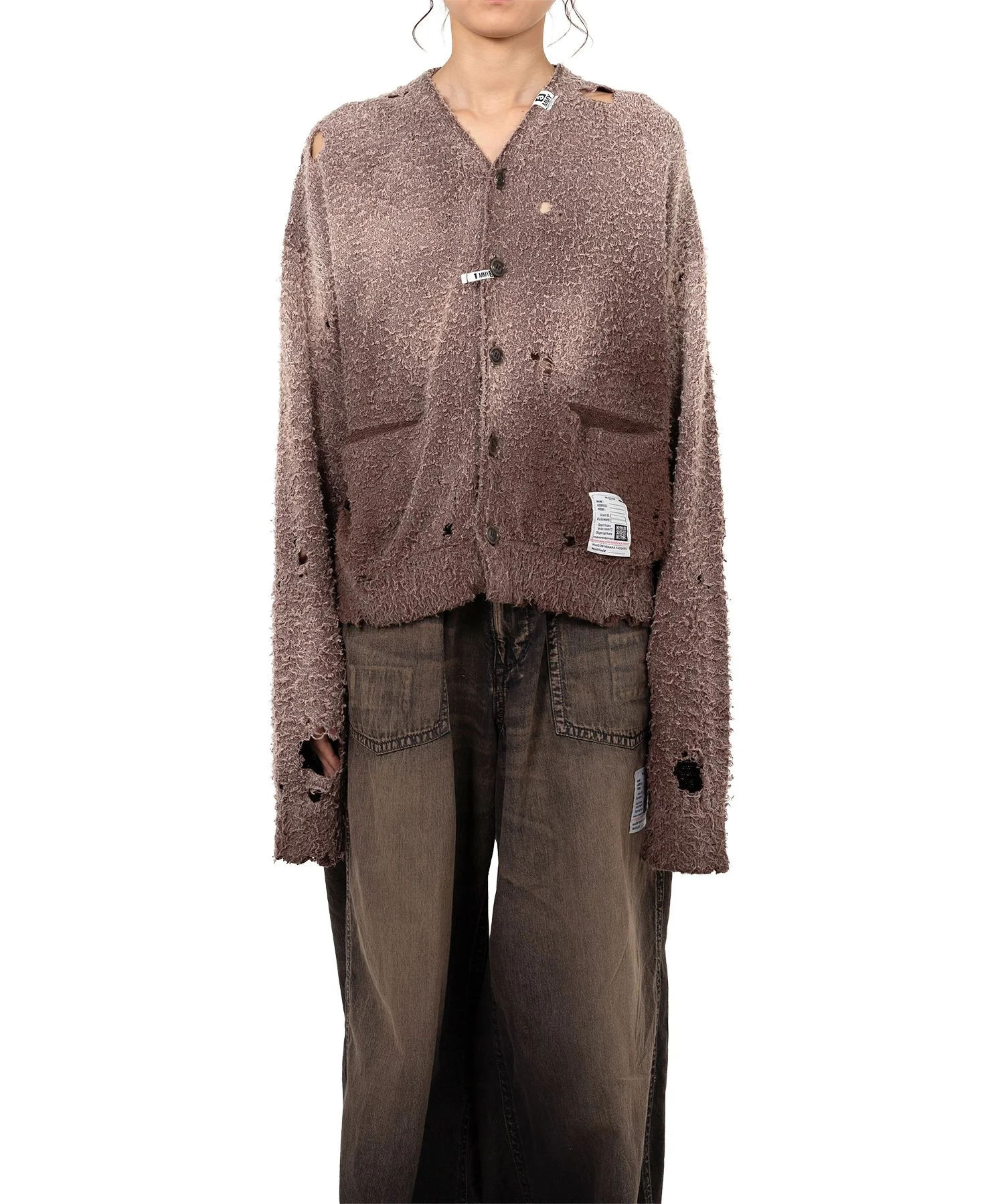 【2025 Autumn/Winter Collection】 Sun Faded Like Knit Cardigan A cotton knit cardigan with bleach and damage processing that looks like it has been sunburned. V-neck. Front pockets Five button holes. *The holes seen throughout are part of the design. Wearing model : 172cm Wearing size : FREE ※Product images may appear different from the actual item due to lighting conditions during photography or variations in monitor settings. ※Some photos feature sample items; actual products may differ slightly in finish or sizing. ※Color, texture, and specifications may vary slightly due to differences in production timing or individual characteristics of each piece. We appreciate your understanding. ※Intentional distressing such as holes, fading, and staining is part of the design and reflects the character of the item. Please enjoy these features as part of its unique aesthetic. ※Stability when wearing may vary depending on the individual. Please use with caution depending on the walking environment. - Item No: K15CD702 - Brand: Maison MIHARA YASUHIRO - Category: WOMENS » TOPS » CARDIGAN - Season: 2025 A/W - Material: COTTON 100% - Made In: JAPAN