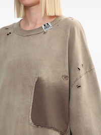 distressed-effect T-shirt Highlights - Taupe brown - Cotton - Jersey texture - Distressed effect - Faded effect - Crew neck - Drop shoulder - Short sleeves - Ripped detailing - Chest patch pocket - Applique detail - Straight hem - Extra-long length Imported Composition Cotton 100% Washing instructions Read Manufacturer Guidelines