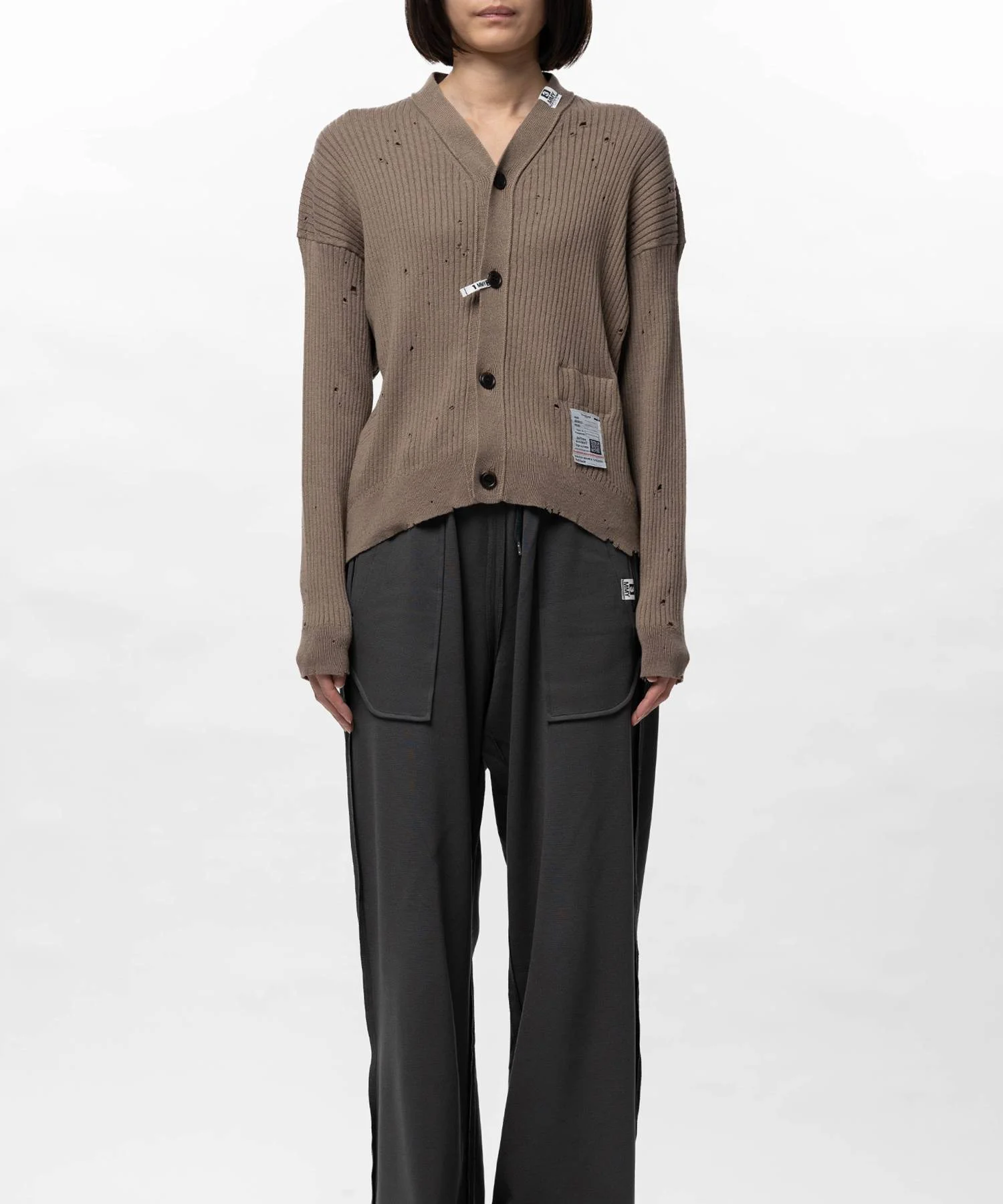 【2026 Spring /Summer Collection】 Distressed Knit Cardigan Distressed knit cardigan V-neck. Button-up. Front pocket. Wearing model : 175cm Wearing size : 38 ※Product images may appear different from the actual item due to lighting conditions during photography or variations in monitor settings. ※Some photos feature sample items; actual products may differ slightly in finish or sizing. ※Color, texture, and specifications may vary slightly due to differences in production timing or individual characteristics of each piece. We appreciate your understanding. ※Intentional distressing such as holes, fading, and staining is part of the design and reflects the character of the item. Please enjoy these features as part of its unique aesthetic. - Item No: K16CD711 - Brand: Maison MIHARA YASUHIRO - Category: WOMENS » TOPS » CARDIGAN - Season: 2026 S/S - Material: Cotton100% - Made In: JAPAN