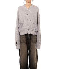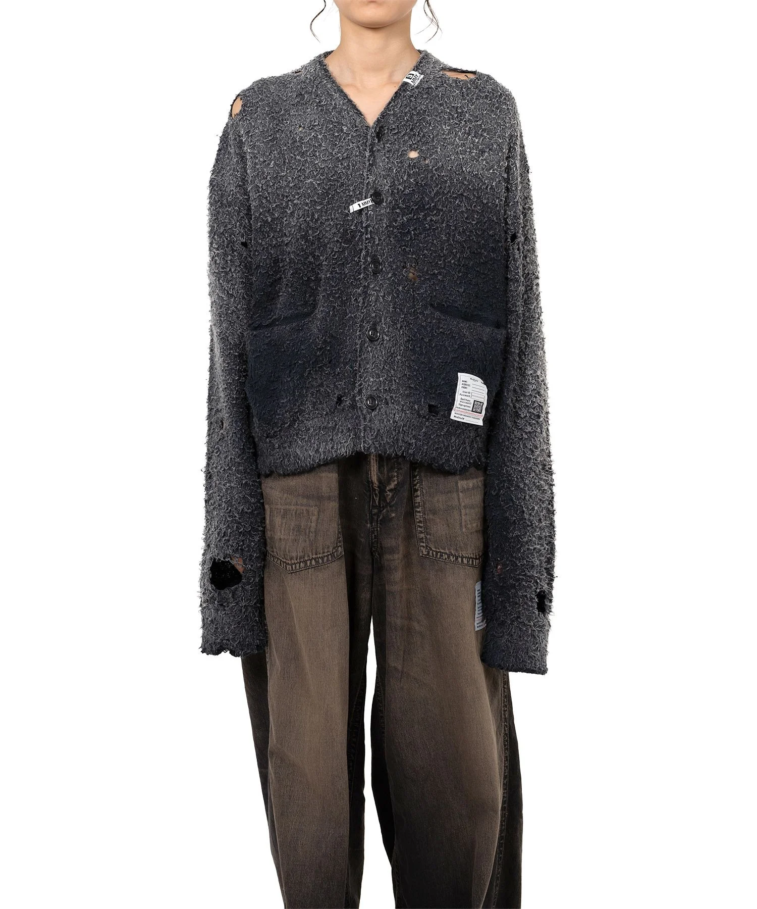 【2025 Autumn/Winter Collection】 Sun Faded Like Knit Cardigan A cotton knit cardigan with bleach and damage processing that looks like it has been sunburned. V-neck. Front pockets Five button holes. *The holes seen throughout are part of the design. Wearing model : 172cm Wearing size : FREE ※Product images may appear different from the actual item due to lighting conditions during photography or variations in monitor settings. ※Some photos feature sample items; actual products may differ slightly in finish or sizing. ※Color, texture, and specifications may vary slightly due to differences in production timing or individual characteristics of each piece. We appreciate your understanding. ※Intentional distressing such as holes, fading, and staining is part of the design and reflects the character of the item. Please enjoy these features as part of its unique aesthetic. ※Stability when wearing may vary depending on the individual. Please use with caution depending on the walking environment. - Item No: K15CD702 - Brand: Maison MIHARA YASUHIRO - Category: WOMENS » TOPS » CARDIGAN - Season: 2025 A/W - Material: COTTON 100% - Made In: JAPAN