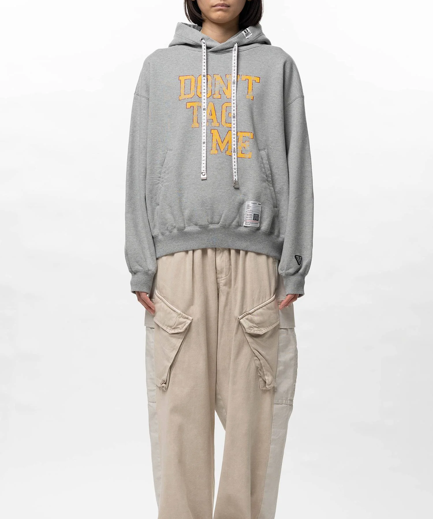 【2026 Spring /Summer Collection】 Don't Tag Me Printed Hoodie Hoodie with “Don't Tag Me” print on the front. Original embroidered patch on the left sleeve cuff. Front pocket. Wearing model : 175cm Wearing size : 38 ※Product images may appear different from the actual item due to lighting conditions during photography or variations in monitor settings. ※Some photos feature sample items; actual products may differ slightly in finish or sizing. ※Color, texture, and specifications may vary slightly due to differences in production timing or individual characteristics of each piece. We appreciate your understanding. ※Intentional distressing such as holes, fading, and staining is part of the design and reflects the character of the item. Please enjoy these features as part of its unique aesthetic. - Item No: K16HD751 - Brand: Maison MIHARA YASUHIRO - Category: WOMENS » TOPS » SWEATSHIRTS - Season: 2026 S/S - Material: Cotton 100% - Made In: JAPAN