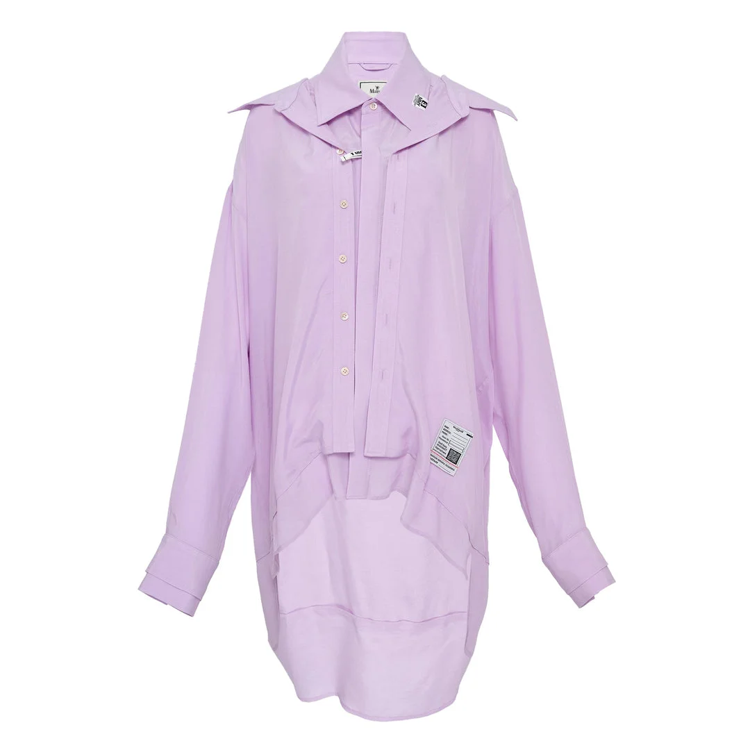 600080184PUR038 / K16SH401/00/PURPLE - Dual-layer construction with integrated inner shirt - Classic point collar - Long sleeves with button cuffs - Front button closure - Asymmetrical hemline - Premium cotton construction - Oversized relaxed fit - Designer label details MIHARA YASUHIRO Double Layered Shirt delivers avant-garde design with innovative layering construction and contemporary silhouette. Crafted from premium cotton in soft lilac purple, featuring dual-layer construction with integrated inner shirt and flowing outer layer. The deconstructed aesthetic and signature MIHARA YASUHIRO styling create a distinctive statement piece for modern wardrobes.