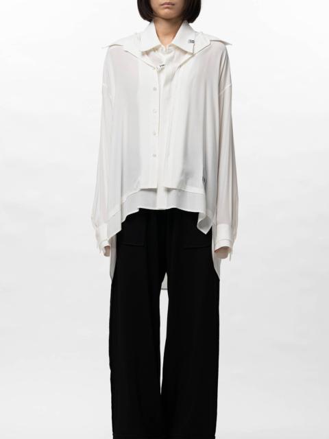【2026 Spring /Summer Collection】 Double Layered Shirt A design featuring one shirt layered over another. Regular collar. Oversized. Button-up. Longer back hem design. Wearing model : 175cm Wearing size : 38 ※Product images may appear different from the actual item due to lighting conditions during photography or variations in monitor settings. ※Some photos feature sample items; actual products may differ slightly in finish or sizing. ※Color, texture, and specifications may vary slightly due to differences in production timing or individual characteristics of each piece. We appreciate your understanding. ※Intentional distressing such as holes, fading, and staining is part of the design and reflects the character of the item. Please enjoy these features as part of its unique aesthetic. - Item No: K16SH401 - Brand: Maison MIHARA YASUHIRO - Category: WOMENS » TOPS » SHIRT/BLOUSE - Season: 2026 S/S - Material: CUPRO55%RAYON45% - Made In: JAPAN