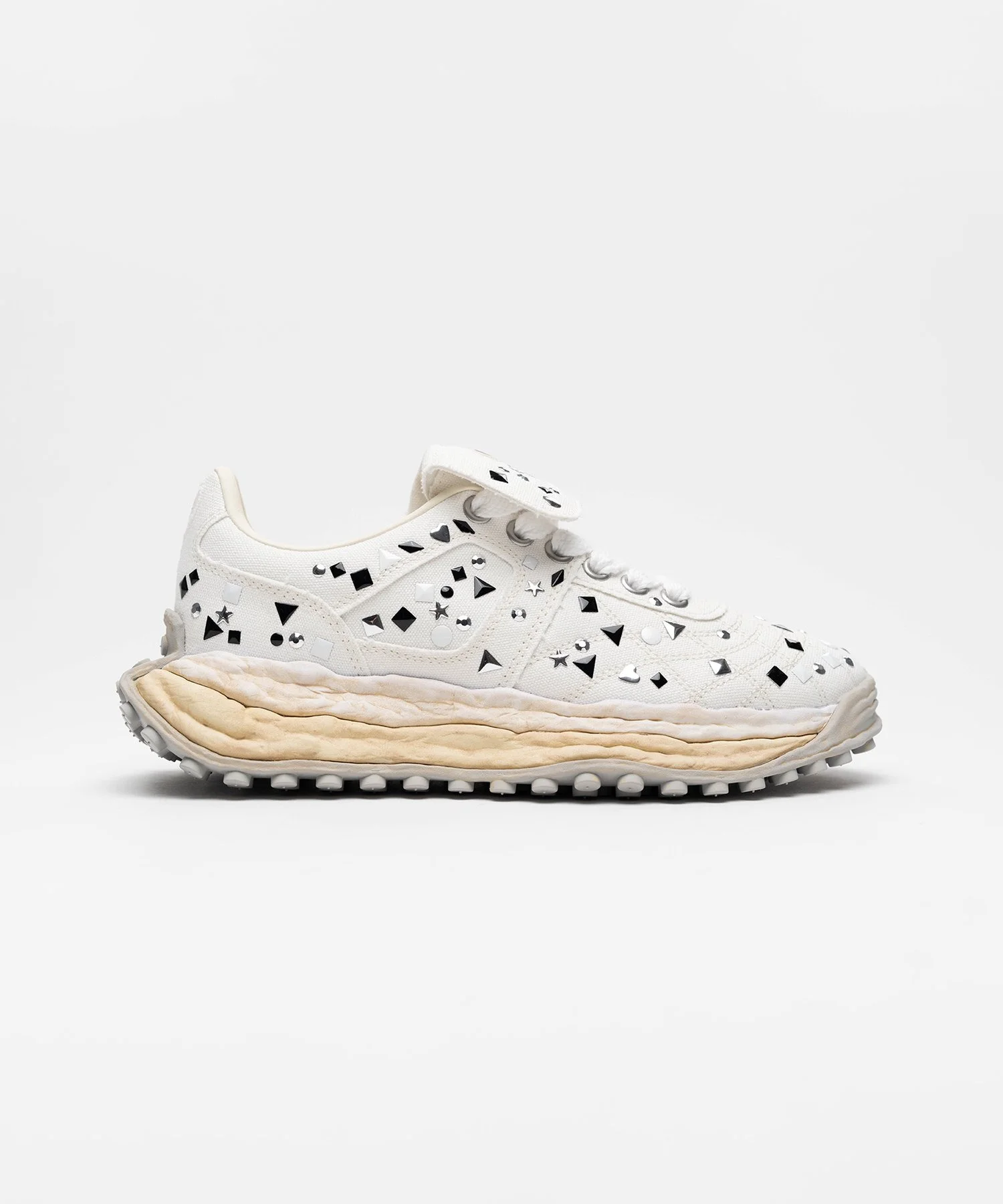 【2026 Spring /Summer Collection】 【EXCLUSIVE】"SCOTT" OG Sole Embellished Canvas Low-top Sneaker Sneakers featuring the brand's original sole, molded in clay by the designer themselves. Features an all-over decorative design. “Scott” model. Canvas upper. *Please note that the JP and US size labels are merely approximate size guides. *Each piece of leather has its own unique character. Please appreciate this as a natural characteristic of the material. ※Product images may appear different from the actual item due to lighting conditions during photography or variations in monitor settings. ※Some photos feature sample items; actual products may differ slightly in finish or sizing. ※Color, texture, and specifications may vary slightly due to differences in production timing or individual characteristics of each piece. We appreciate your understanding. ※Intentional distressing such as holes, fading, and staining is part of the design and reflects the character of the item. Please enjoy these features as part of its unique aesthetic. - Item No: A16FW709 - Brand: Maison MIHARA YASUHIRO - Category: EVERYONE » SHOES » SNEAKERS - Season: 2026 S/S - Material: UPPER:COTTON100% SOLE:RUBBER100% - Made In: CHINA
