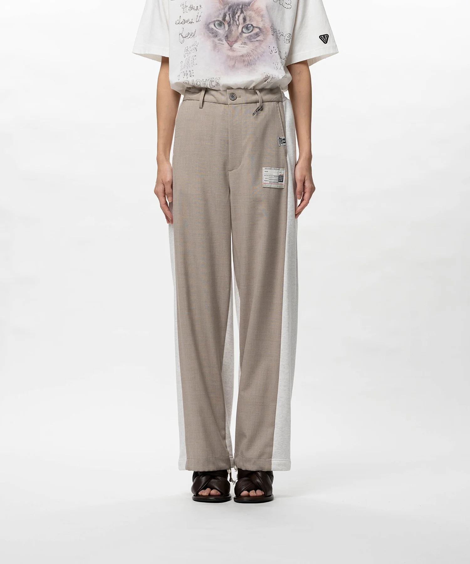 【2026 Spring /Summer Collection】 Front Back Combined Pants Combination fabric pants. A design combining wool-blend pants with sweatpants. Side and back pockets. Wearing model : 175cm Wearing size : 38 ※Product images may appear different from the actual item due to lighting conditions during photography or variations in monitor settings. ※Some photos feature sample items; actual products may differ slightly in finish or sizing. ※Color, texture, and specifications may vary slightly due to differences in production timing or individual characteristics of each piece. We appreciate your understanding. ※Intentional distressing such as holes, fading, and staining is part of the design and reflects the character of the item. Please enjoy these features as part of its unique aesthetic. - Item No: B16PT121 - Brand: Maison MIHARA YASUHIRO - Category: WOMENS » BOTTOM » PANTS - Season: 2026 S/S - Material: POLYESTER70%WOOL30%×COTTON100% - Made In: CHINA