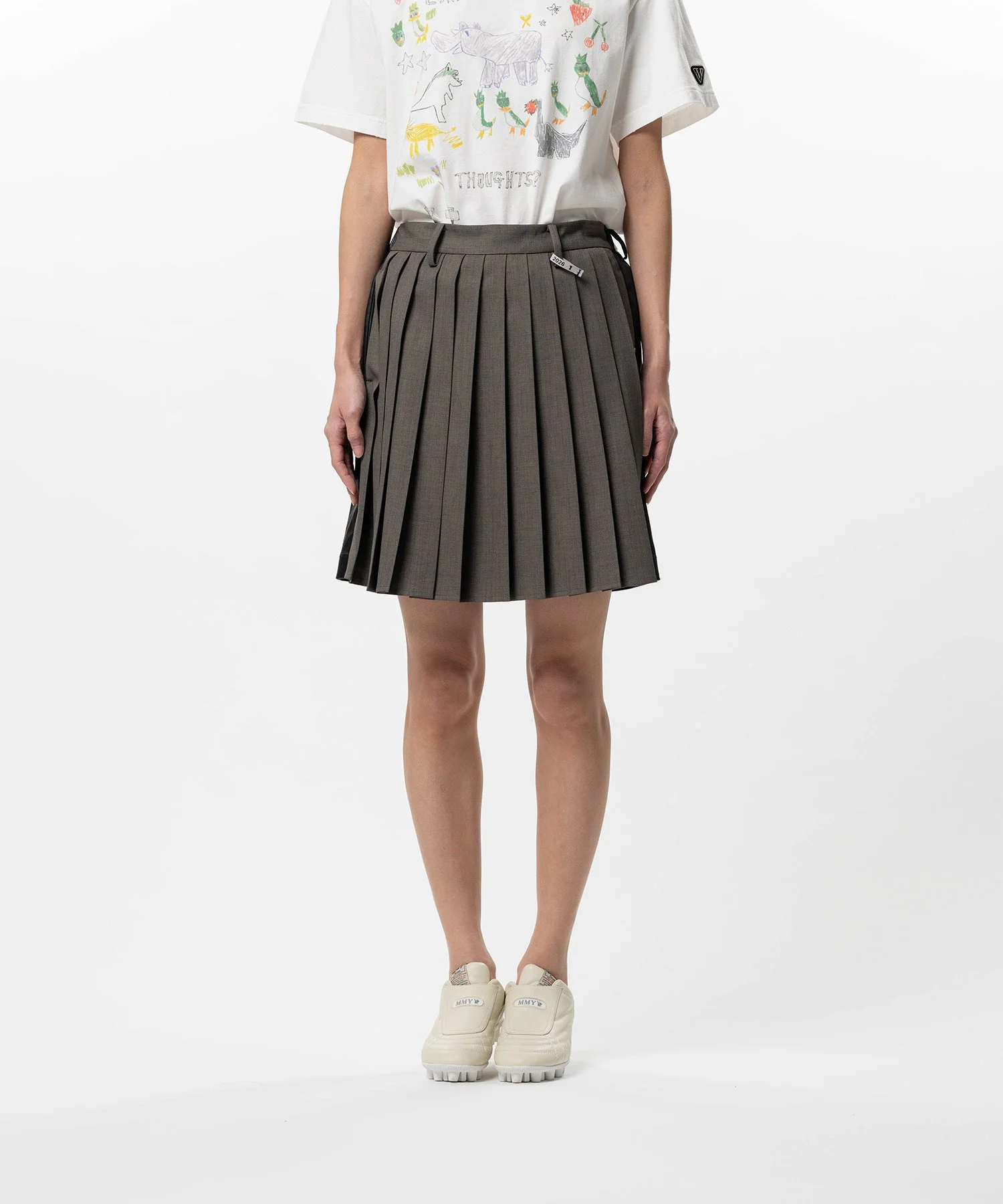【2026 Spring /Summer Collection】 Front Back Combined Skirted Pants Combination skirt pants. A design combining a pleated skirt with shorts. Side pockets. Wearing model : 175cm Wearing size : 38 ※Product images may appear different from the actual item due to lighting conditions during photography or variations in monitor settings. ※Some photos feature sample items; actual products may differ slightly in finish or sizing. ※Color, texture, and specifications may vary slightly due to differences in production timing or individual characteristics of each piece. We appreciate your understanding. ※Intentional distressing such as holes, fading, and staining is part of the design and reflects the character of the item. Please enjoy these features as part of its unique aesthetic. - Item No: B16PT042 - Brand: Maison MIHARA YASUHIRO - Category: WOMENS » BOTTOM » PANTS - Season: 2026 S/S - Material: POLYESTER100% - Made In: CHINA