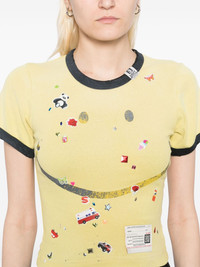 graphic print T-shirt Highlights - Camel yellow - Short sleeves - Crew neck - Straight hem - Graphic print to the front Imported Composition Cotton 100% SIZE & FIT Model measurements Height 5 ft 9 in(1.76 m) Bust/Chest 31.1 in(79 cm) Hips 35.03 in(89 cm) Waist 24.4 in(62 cm) FittingInformation Designed for a slim fit that sits just away from the body offering a close yet comfortable fit Made from a midweight non-stretch fabric, this piece offers minimal elasticity when worn Washing instructions Machine Wash