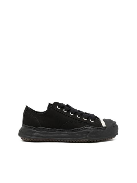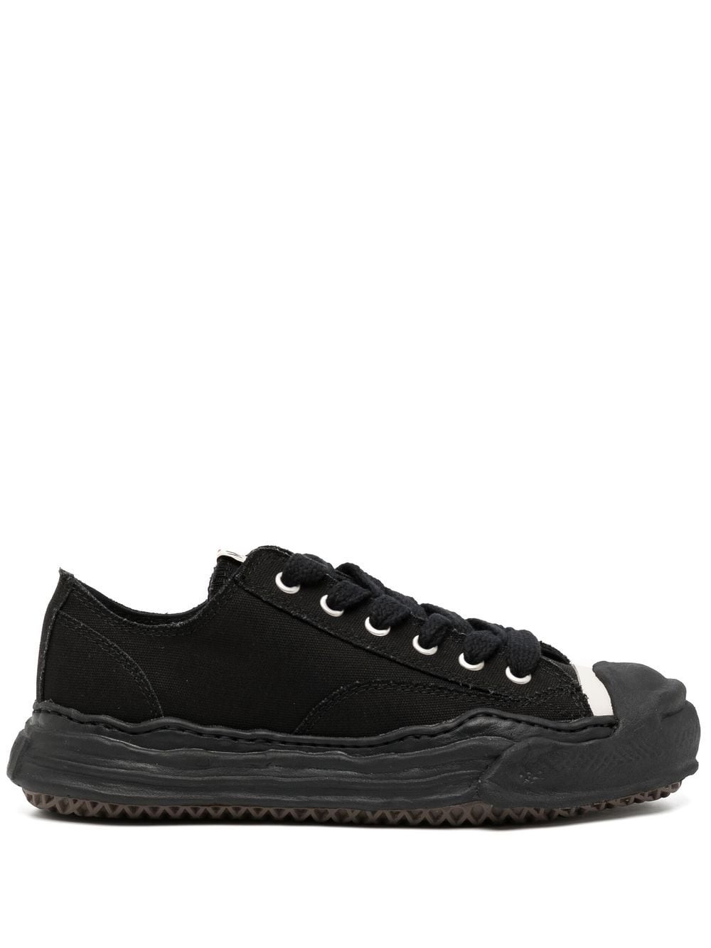 Hank low-top sneakers Maison MIHARA YASUHIRO is known for its avant-garde and experimental aesthetic, and these Hank sneakers are a prime example. They are rendered from canvas ensuring durability and comfort and set on the signature Original warped sole. Highlights - Black - Canvas - Logo patch to the front - Branded insole - Round toe - Front lace-up fastening - Flat rubber sole Imported Composition SIZE & FIT Measurement PLATFORM 1.57 in(4 cm)
