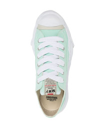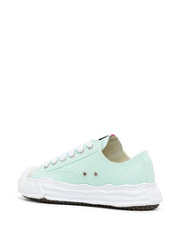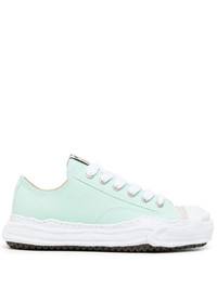 Hank low-top sneakers Maison MIHARA YASUHIRO is known for its avant-garde and experimental aesthetic, and these Hank sneakers are a prime example. They are rendered from canvas ensuring durability and comfort and set on the signature Original warped sole. Highlights - Aqua blue - Cotton/canvas - Logo patch at the tongue - Round toe - Front lace-up fastening - Branded insole - Flat rubber sole Imported Composition Sole: Rubber 100% Outer: Cotton 100% Lining: Fabric 100% SIZE & FIT Measurement Sole height 1.57 in(4 cm) Washing instructions Do Not Wash/Do Not Dry Clean