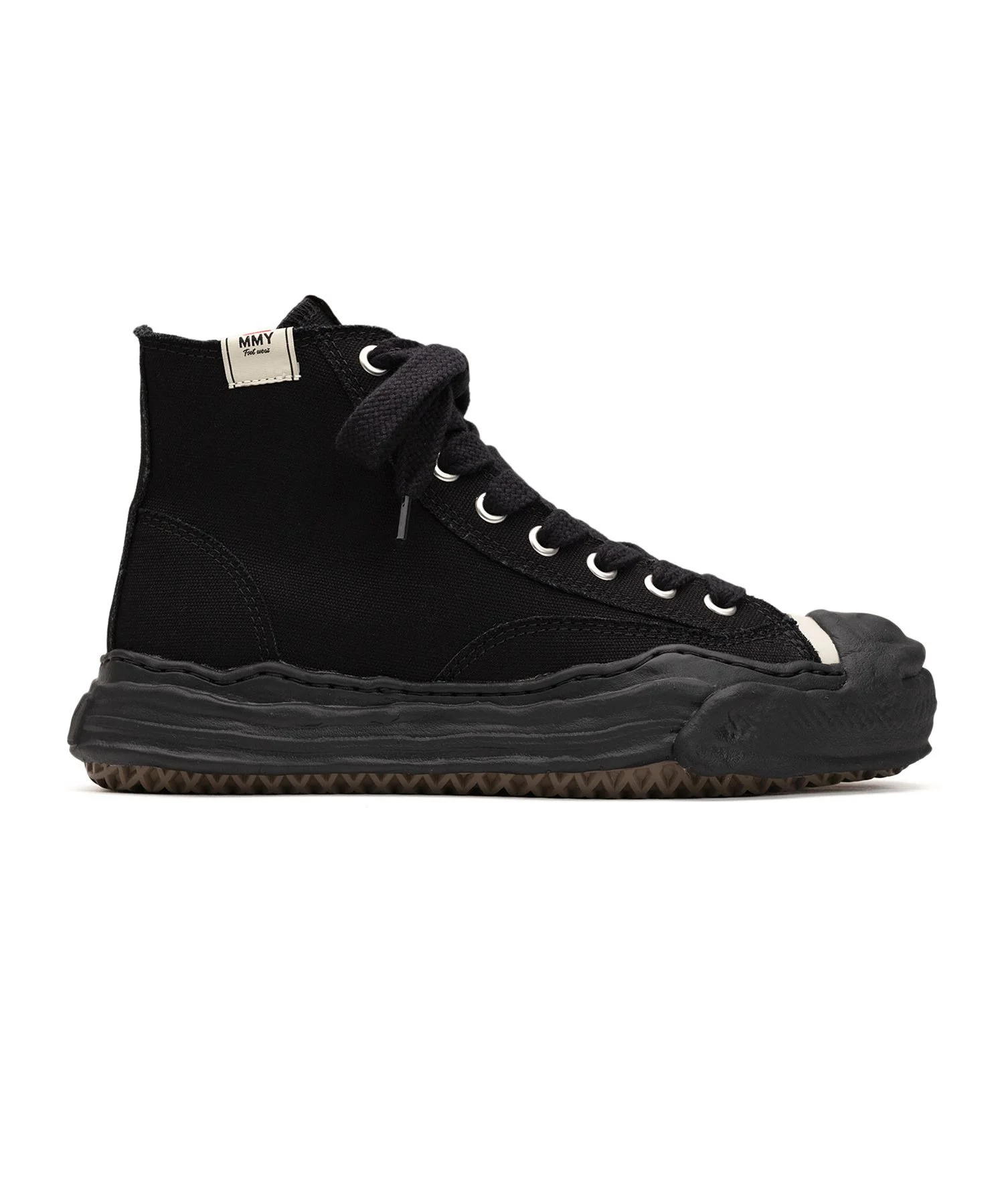 "HANK" Original Sole Canvas High-Top Sneaker The sneaker uses original sole created by the designer MIHARA modeled by hand using clay. The STANDARD "HANK" model with the canvas upper. Added new colour Black/Black. * Please note that the notations for 'JP' and 'US' are shown for reference. purposes only. ※Product images may appear different from the actual item due to lighting conditions during photography or variations in monitor settings. ※Some photos feature sample items; actual products may differ slightly in finish or sizing. ※Color, texture, and specifications may vary slightly due to differences in production timing or individual characteristics of each piece. We appreciate your understanding. - Item No: A05FW701 - Brand: Maison MIHARA YASUHIRO - Category: EVERYONE » SHOES » SNEAKERS - Material: UPPER : COTTON SOLE : RUBBER - Made In: CHINA