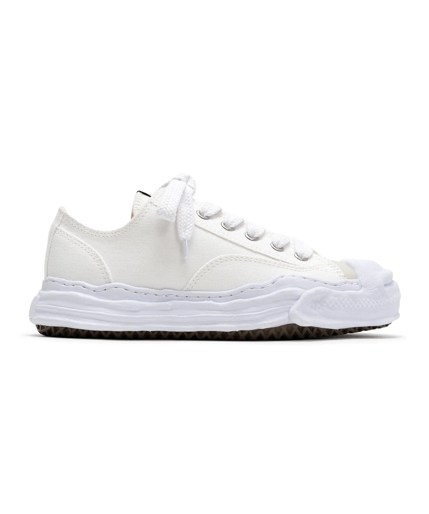 "HANK"Original Sole Canvas Low-top Sneaker The sneaker uses original sole created by the designer MIHARA modeled by hand using clay. The STANDARD "HANK" model with the canvas upper. * Please note that the notations for 'JP' and 'US' are shown for reference purposes only. ※Product images may appear different from the actual item due to lighting conditions during photography or variations in monitor settings. ※Some photos feature sample items; actual products may differ slightly in finish or sizing. ※Color, texture, and specifications may vary slightly due to differences in production timing or individual characteristics of each piece. We appreciate your understanding. - Item No: A05FW702 - Brand: Maison MIHARA YASUHIRO - Category: EVERYONE » SHOES » SNEAKERS - Material: UPPER : COTTONSOLE : RUBBER - Made In: CHINA