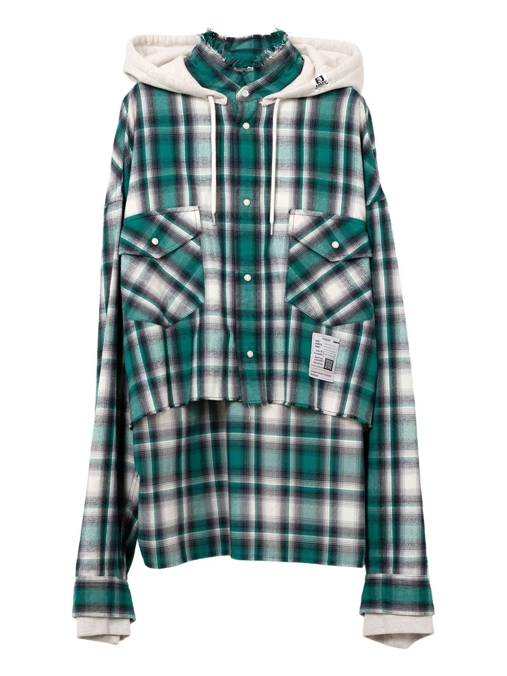 hooded check shirt Highlights - Green - Cotton - Check pattern - Hooded - Chest pockets - Button fastening - Raw hem Imported Composition Cotton 100% Washing instructions Hand Wash