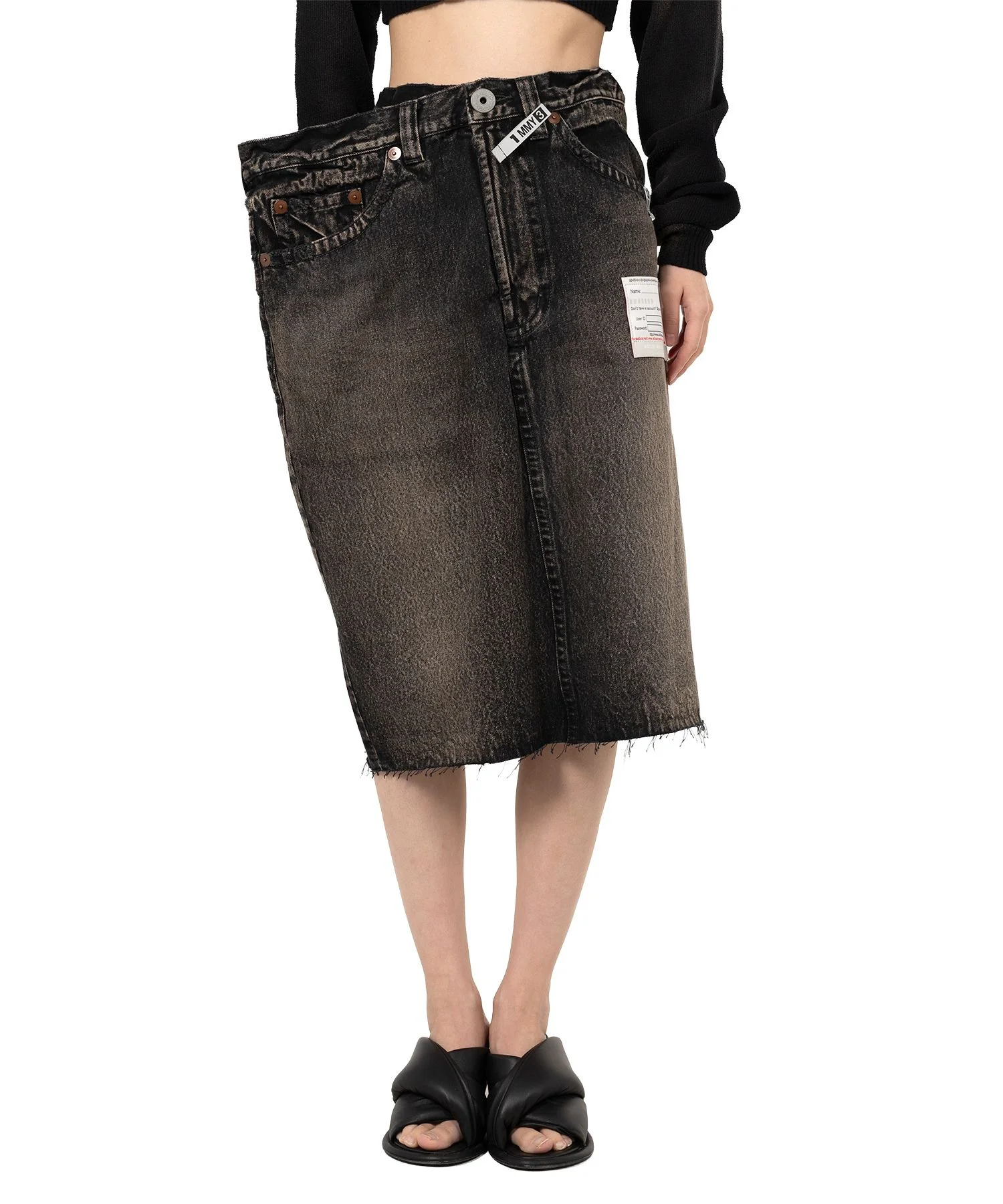 【2025 Autumn/Winter Collection】 Huge Layered Denim Skirt Huge silhouette denim skirt. Double-layered design, as if a denim skirt one size larger is layered over a regular size denim skirt. Side and back pockets. Loop design. Wearing model : 175cm Wearing size : 40 ※Product images may appear different from the actual item due to lighting conditions during photography or variations in monitor settings. ※Some photos feature sample items; actual products may differ slightly in finish or sizing. ※Color, texture, and specifications may vary slightly due to differences in production timing or individual characteristics of each piece. We appreciate your understanding. - Item No: B15SK075 - Brand: Maison MIHARA YASUHIRO - Category: WOMENS » BOTTOM » SKIRT - Season: 2025 A/W - Material: COTTON 100% - Made In: JAPAN