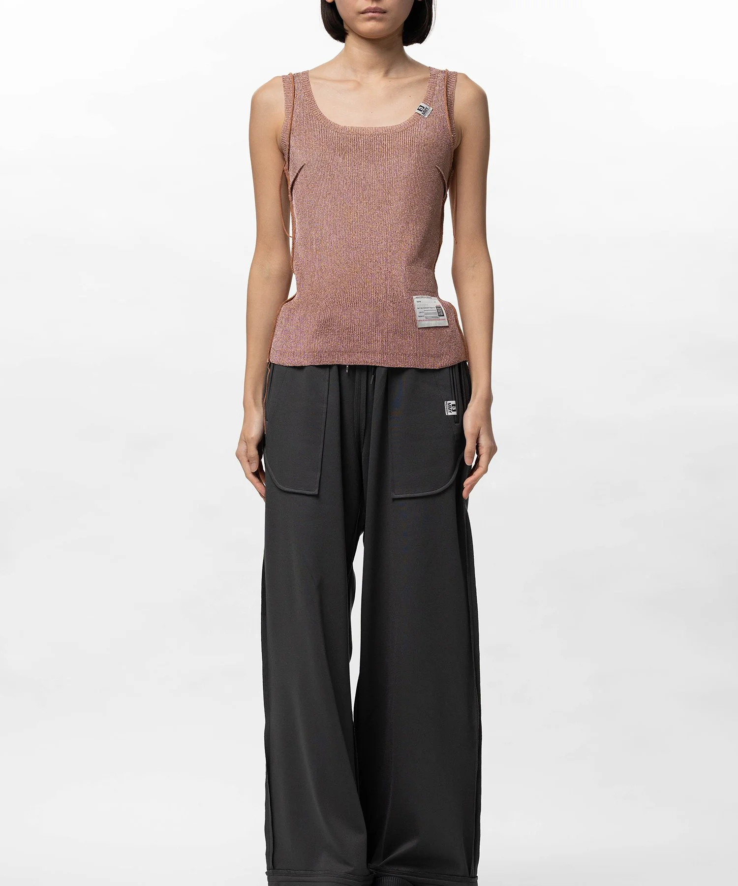 【2026 Spring /Summer Collection】 Inside-Out Glitter Knit Tank-top A knit sweater woven with fine glitter thread. Designed to look like it's worn inside out. Crew neck. Wearing model : 175cm Wearing size : 38 ※Product images may appear different from the actual item due to lighting conditions during photography or variations in monitor settings. ※Some photos feature sample items; actual products may differ slightly in finish or sizing. ※Color, texture, and specifications may vary slightly due to differences in production timing or individual characteristics of each piece. We appreciate your understanding. ※Intentional distressing such as holes, fading, and staining is part of the design and reflects the character of the item. Please enjoy these features as part of its unique aesthetic. - Item No: B16TS614 - Brand: Maison MIHARA YASUHIRO - Category: WOMENS » TOPS » TSHIRTS - Season: 2026 S/S - Material: Cotton 68%, Polyester 32% - Made In: CHINA
