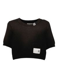 knitted top Highlights - Dark brown - Round neck - Logo tag Imported Composition Cotton 70%, Nylon 30% SIZE & FIT Model measurements Height 5 ft 10 in(1.78 m) Bust/Chest 31.88 in(81 cm) Hips 37 in(94 cm) Waist 25.19 in(64 cm) FittingInformation Designed for a slim fit that sits just away from the body offering a close yet comfortable fit Made with a lightweight knit, this piece offers some stretch Washing instructions Dry Clean Only