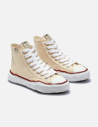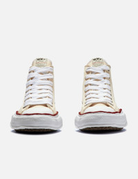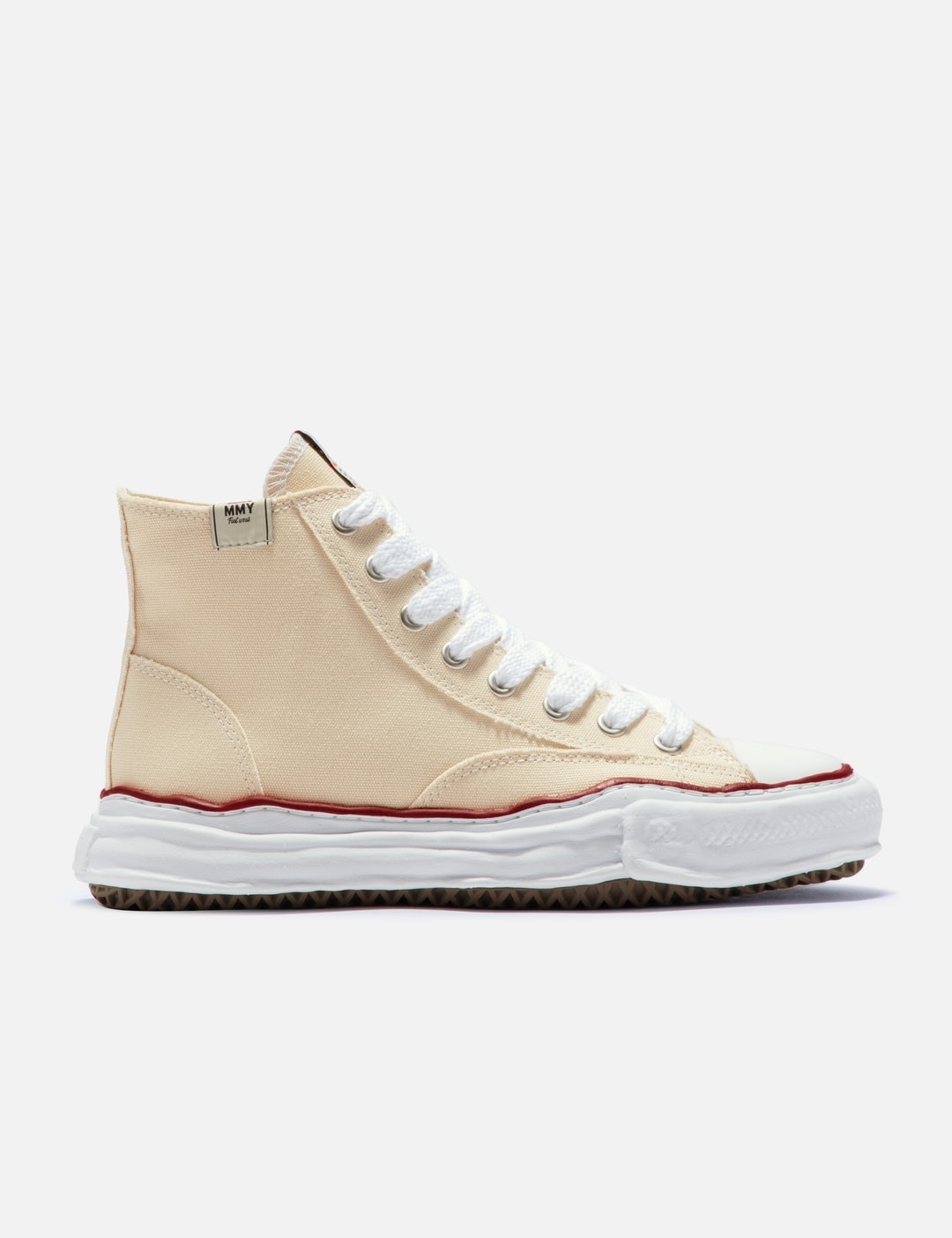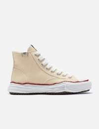 - Maison Mihara Yasuhiro - Peterson High Top Sneakers - Canvas upper - Round toe - Branded tongue - Logo tag on collar - Lace-up closure - Contrasting red welts - Signature sculpted midsole - Rubber outsole - Color: Natural - Material: Canvas, Rubber - See more Sneakers and Shoes