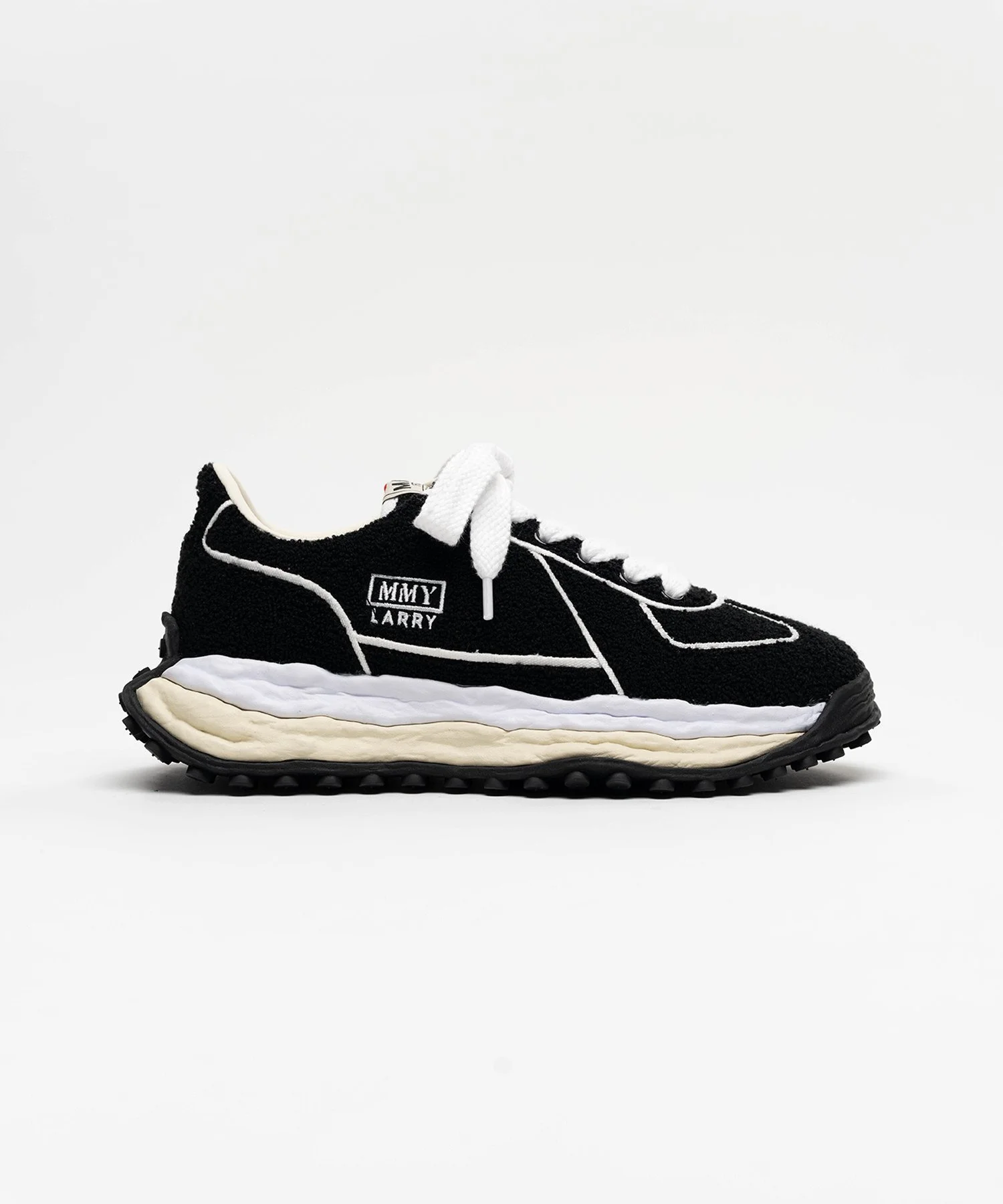 【2026 Spring /Summer Collection】 "LARRY" OG Sole Chenille Embroidey Canvas Low-top Sneaker Sneakers featuring the brand's original sole, molded in clay by the designer themselves. Design with fluffy, three-dimensional chenille embroidery applied across the entire upper. "LARRY" model. Canvas upper. Outsole features a textured, uneven shape. MMY and model name embroidered on the upper. *Please note that JP and US size labels are approximate size guides only. ※Product images may appear different from the actual item due to lighting conditions during photography or variations in monitor settings. ※Some photos feature sample items; actual products may differ slightly in finish or sizing. ※Color, texture, and specifications may vary slightly due to differences in production timing or individual characteristics of each piece. We appreciate your understanding. ※Intentional distressing such as holes, fading, and staining is part of the design and reflects the character of the item. Please enjoy these features as part of its unique aesthetic. - Item No: A16FW712 - Brand: Maison MIHARA YASUHIRO - Category: EVERYONE » SHOES » SNEAKERS - Season: 2026 S/S - Material: COTTON 100% (UPPER) RUBBER (SOLE) - Made In: CHINA
