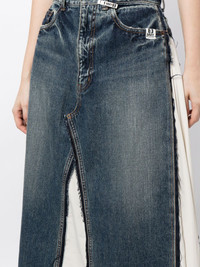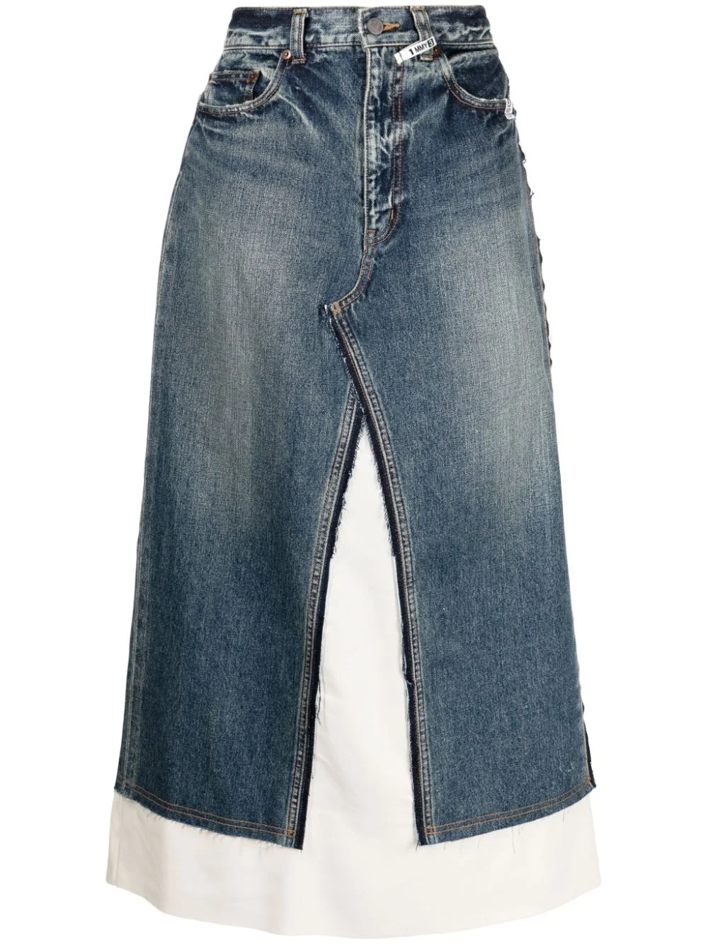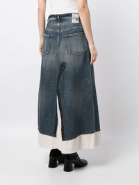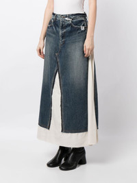 layered denim flared skirt Highlights - Indigo blue/cream white - Cotton - Washed denim - Stonewashed - Layered design - Logo patches to the front - Flared - Concealed fly and button fastening - Classic five pockets - Ankle-length Imported Composition Outer: Cotton 100% Cotton 100%, Viscose 100% SIZE & FIT Model measurements Height 5 ft 10 in(1.79 m) Bust/Chest 31.49 in(80 cm) Hips 34.64 in(88 cm) Waist 22.83 in(58 cm) FittingInformation This maxi-length skirt is intended to be worn just below the waist Made from a midweight fabric This piece fits true to size – take your usual size Washing instructions Dry Clean Only