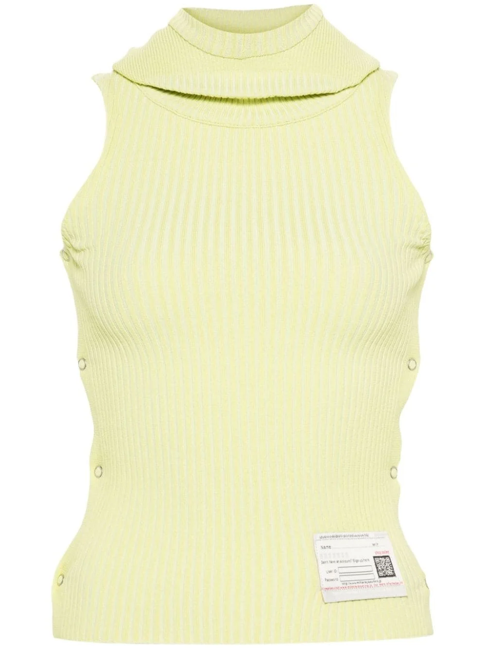 logo-patch top Highlights - Chartreuse yellow - Cotton blend - Ribbed knit - Classic hood - Logo patch to the hood - High neck - Sleeveless - Logo patch to the side - Straight hem - Side press-stud fastening Imported Composition Cotton 61%, Polyester 39% SIZE & FIT Model measurements Height 5 ft 9 in(1.76 m) Bust/Chest 31.88 in(81 cm) Hips 35.43 in(90 cm) Waist 24.8 in(63 cm) FittingInformation Designed for a close fit throughout Made with a midweight knit, this piece offers some stretch This piece fits true to size – take your usual size