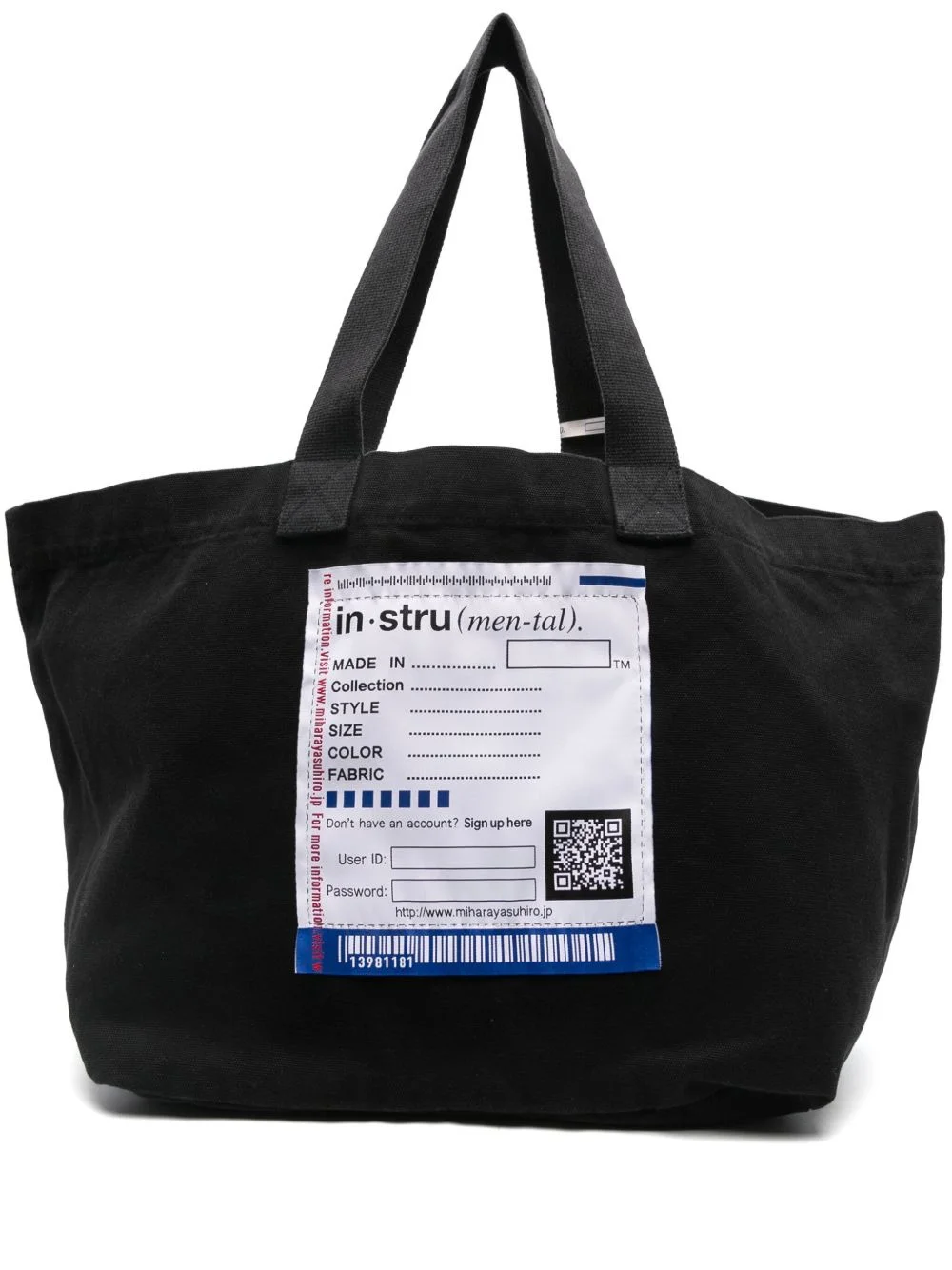 logo-patch tote bag Highlights - Black - Cotton - Canvas - Rectangle body - Two flat top handles - Logo patch to the front - Main compartment - Internal logo patch - Open top Imported Composition Outer: Cotton 100% SIZE & FIT Measurement DEPTH 9.84 in(25 cm) HANDLE 9.44 in(24 cm) HEIGHT 11.81 in(30 cm) WIDTH 23.22 in(59 cm) Washing instructions Machine Wash
