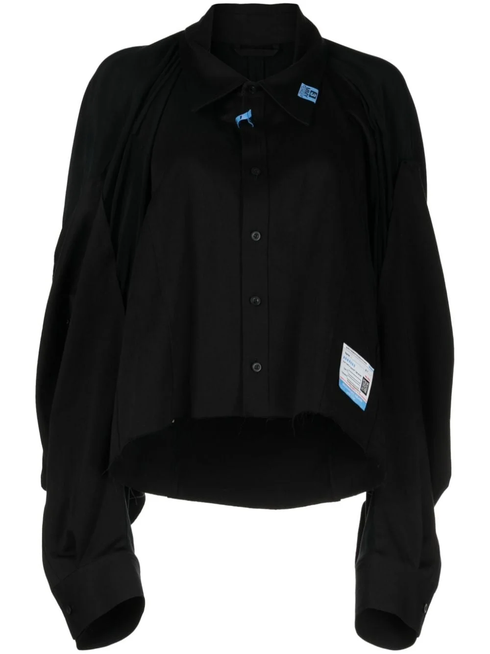 logo-patches panelled cotton shirt Highlights - Black - Cotton - Panelled design - Logo patches to the front - Oversized pointed collar - Drop shoulder - Front button fastening - Detachable waist belt - Shirt sleeves - Raw-cut hem Imported Composition Body: Cotton 100% Cupro 55%, Rayon 45% SIZE & FIT Model measurements Height 5 ft 10 in(1.77 m) Bust/Chest 31.49 in(80 cm) Hips 35.43 in(90 cm) Waist 25.19 in(64 cm) FittingInformation Designed for a relaxed fit, this piece allows for comfort and movement when worn Cropped in length Made from a midweight non-stretch fabric This piece fits true to size – take your usual size Washing instructions Dry Clean Only