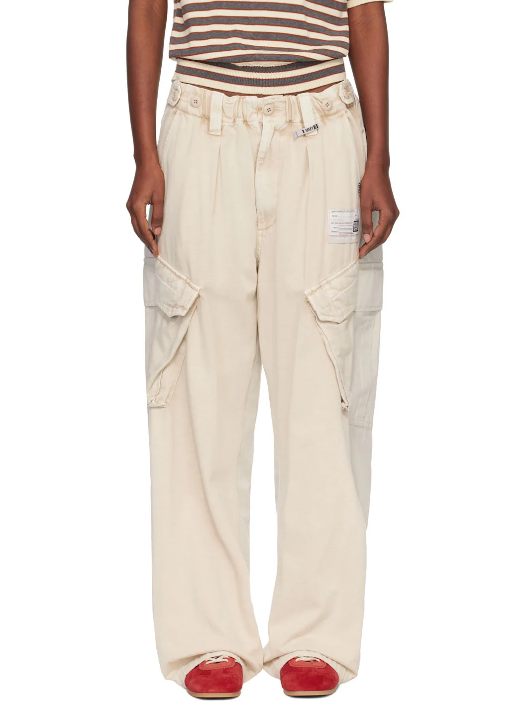 Cotton ripstop and cotton flannel cargo pants. · Paneled construction · Concealed drawstring at elasticized waistband · Adjustable button tabs at waistband · Four-pocket styling · Zip fly · Drawstring at cuffs · Cargo pocket at outseams Supplier color: Beige 100% cotton. Made in Japan 261551F087001