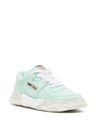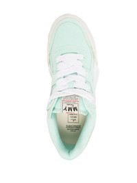 Parker low-top sneakers Crafted from a sporty canvas upper, Maison MIHARA YASUHIRO's Parker sneakers are complete with a chunky warped sole, lending the pair an experimental edge. Highlights - Mint green - Canvas - Round toe - Front lace-up fastening - Logo patch at the tongue - Logo print to the side - Logo print to the rear - Branded insole - Chunky rubber sole Imported Composition Sole: Rubber 100% Outer: Canvas 100% Lining: Mesh 100% SIZE & FIT Measurement HEEL 1.18 in(3 cm) HEIGHT 2.95 in(7.5 cm) Sole height 1.18 in(3 cm)