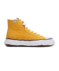 "PETERSON23" Original Sole Canvas High-top Sneaker The sneaker uses original sole created by the designer MIHARA modeled by hand using clay. New model "Peterson 23". An updated version of the Peterson model. Shoe width is widened to give a more comfortable fit. Toe part is also made of the same material as the sole, giving it a three-dimensional design. Canvas upper. * Please note that the notations for 'JP' and 'US' are shown for reference purposes only. ※Product images may appear different from the actual item due to lighting conditions during photography or variations in monitor settings. ※Some photos feature sample items; actual products may differ slightly in finish or sizing. ※Color, texture, and specifications may vary slightly due to differences in production timing or individual characteristics of each piece. We appreciate your understanding. - Item No: A11FW701 - Brand: Maison MIHARA YASUHIRO - Category: EVERYONE » SHOES » SNEAKERS - Material: UPPER : COTTON SOLE : RUBBER - Made In: CHINA