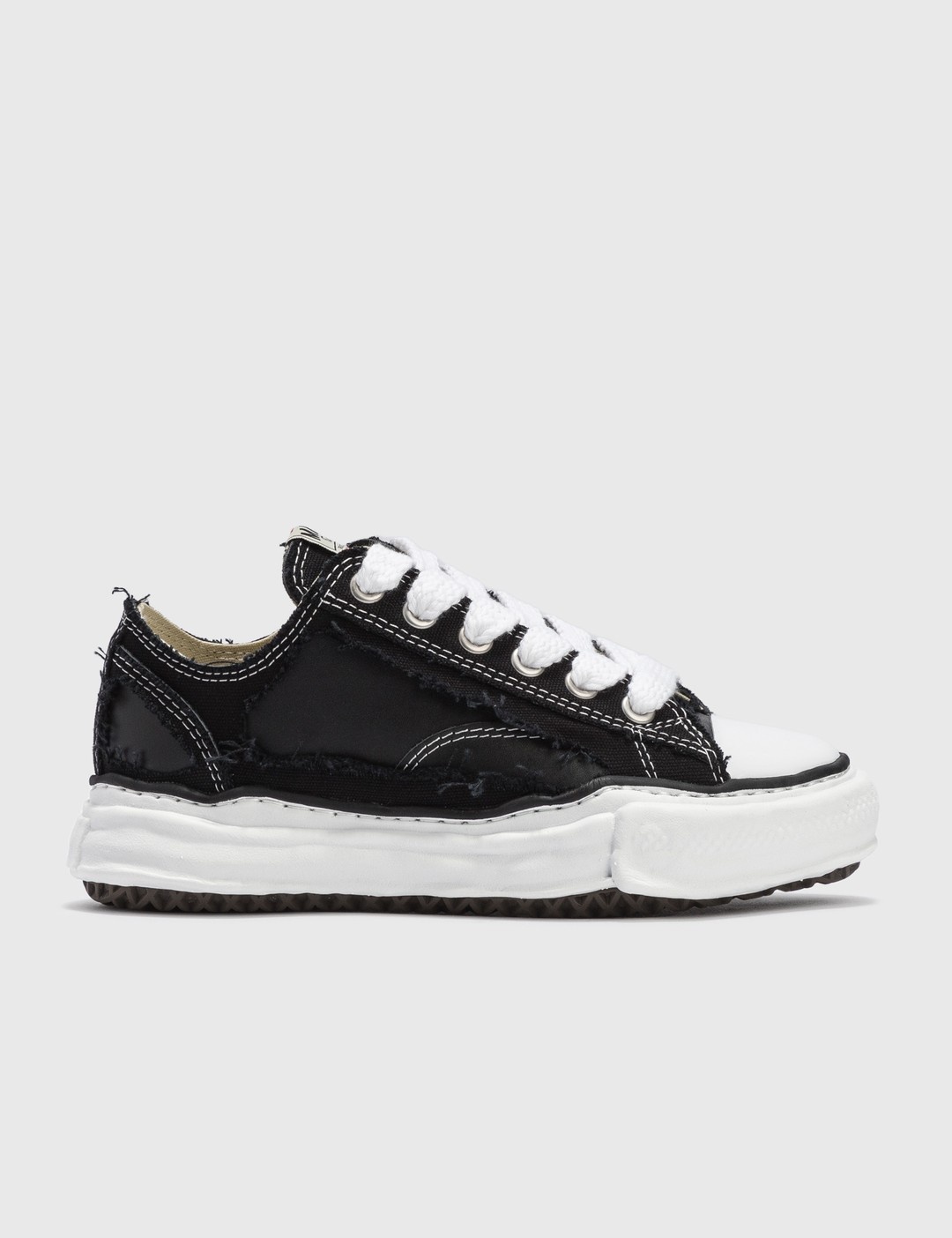 - Maison Mihara Yasuhiro - Peterson OG Sole Broken Low Top Sneakers - Low top - Leather upper with torn canvas overlay - Round toe - Lace-up closure - Outlined welt - Signature sculpted platform midsole - Rubber outsole - Color: Black - Material: Canvas, Leather, Rubber - See more - Sneakers - and - Shoes