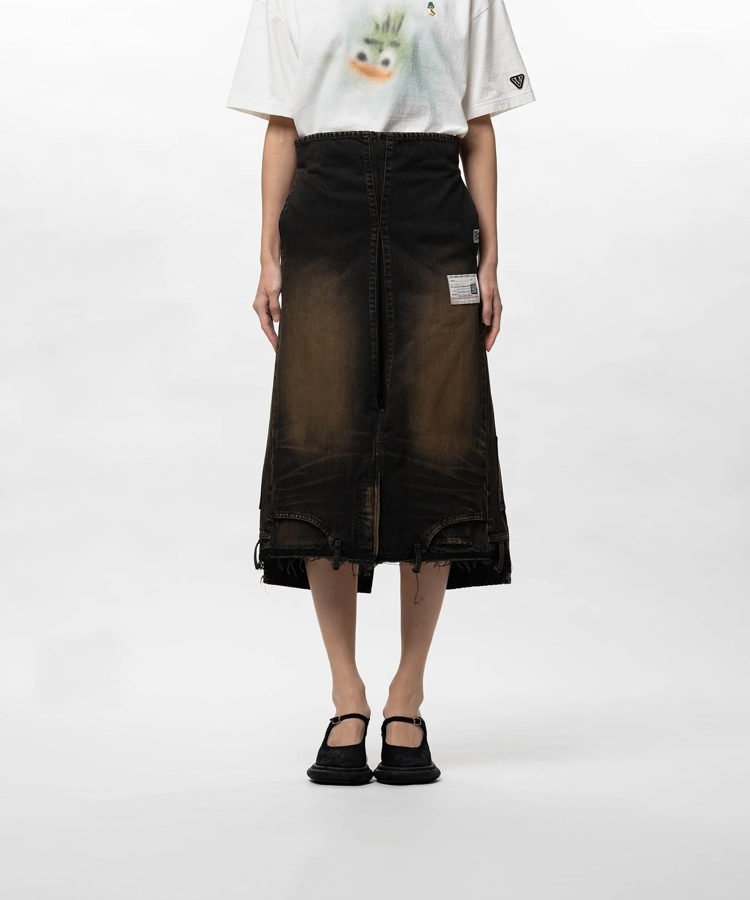 【2026 Spring /Summer Collection】 Reversed Denim Skirt A skirt with an upside-down design. Features a vintage finish primarily achieved through bleach processing. Back zipper. Side and back pockets. Wearing model : 175cm Wearing size : 38 ※Product images may appear different from the actual item due to lighting conditions during photography or variations in monitor settings. ※Some photos feature sample items; actual products may differ slightly in finish or sizing. ※Color, texture, and specifications may vary slightly due to differences in production timing or individual characteristics of each piece. We appreciate your understanding. ※Intentional distressing such as holes, fading, and staining is part of the design and reflects the character of the item. Please enjoy these features as part of its unique aesthetic. - Item No: B16SK061 - Brand: Maison MIHARA YASUHIRO - Category: WOMENS » BOTTOM » SKIRT - Season: 2026 S/S - Material: COTTON100% - Made In: JAPAN