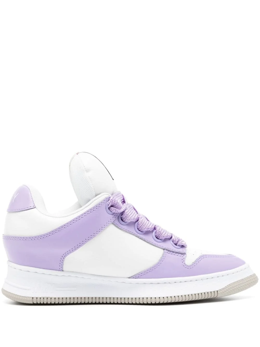 Rosy pointed-toe puffer sneakers Highlights - Lilac purple/white - Calf leather - Padded design - Pointed toe - Perforated toebox - Front lace-up fastening - Oversize tongue - Logo patch at the tongue - Branded heel counter - Ridged rubber sole Made in Italy Composition Leather 100% SIZE & FIT Measurement HEEL 1.37 in(3.5 cm) Sole height 0.78 in(2 cm)