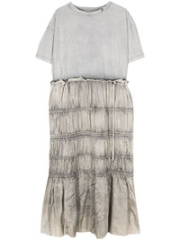 ruched cotton midi dress Highlights - Light grey - Cotton - Round neck - Short sleeves - Ruched detailing - Mid-length - Straight hem Imported Composition Cotton 100%