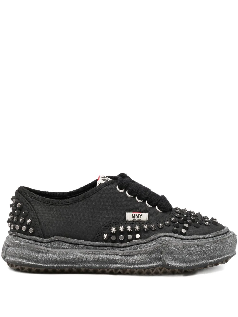 stud low-top trainers Highlights - Black - Front lace-up fastening - Stud detailing - Round toe - Rubber sole Imported Composition Lining: Rubber 50%, Fabric 50% Outer: Fabric 100% Sole: Rubber 100%
